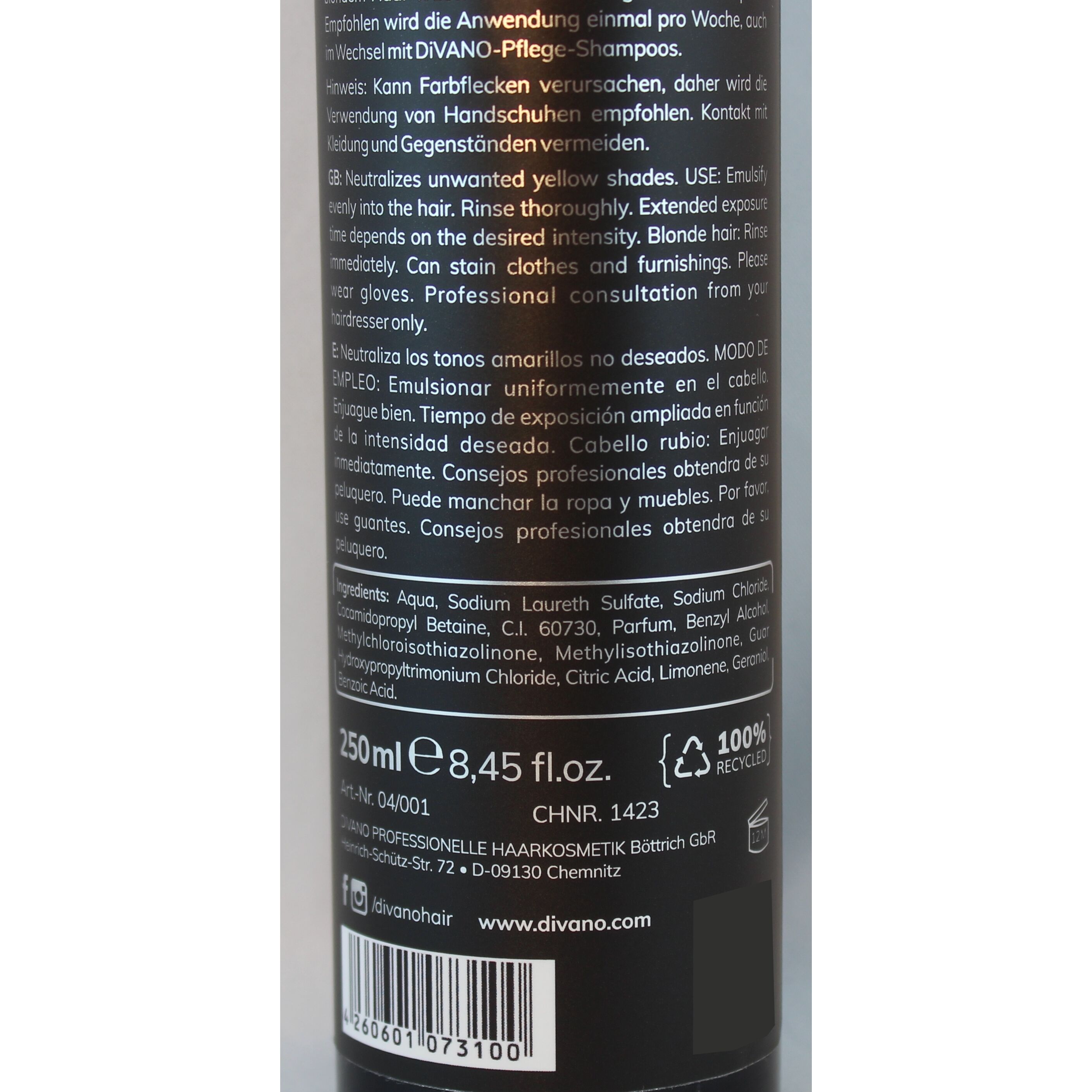- Empfohlen wird die Anwendung einmal pro Woche, auch im Wechsel mit passenden DiVANO-Pflegeshampoos.